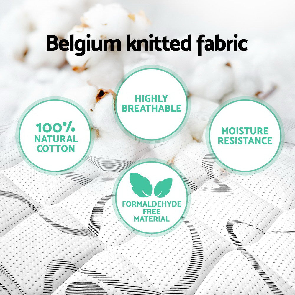 Covered with premium Belgium knitted fabric for unsurpassed softness and body heat dissipation, the Giselle Bedding Firm Mattress is also highly breathable and dust mite and mould-resistant with no necessity to turn over the mattress, unlike other inferior alternatives. Handy side handles enable you to position the mattress easily.